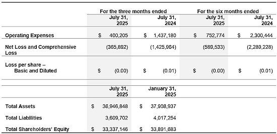 September 29, 2025 Clean Air Metals Files Interim Financial Statements for the Six Months Ended July 31, 2025 Thunder Bay, ON, September 29, 2025 – Clean Air Metals Inc. (“Clean Air Metals” or the “Company”) (TSX.V: AIR; FRA: CKU; OTCQB: CLRMF) announces that it has filed its unaudited consolidated interim financial statements and management's discussion and analysis for the six-month period ended July 31, 2025, available for viewing on www.sedarplus.ca. Financial Highlights Total assets as at July 31, 2025 of $36,946,848 Total cash as at July 31, 2025 of $2,479,746 Working capital deficiency as at July 31, 2025 of $1,017,202 Shareholder’s equity as at July 31, 2025 of $33,337,146 During the six months ended July 31, 2025, the Company incurred $620,396 in cost for exploration activities at the TBN project. Key activities of the Company’s management team this quarter focused on development of exploration targets at the Escape Deposit down plunge and subsequently the kick-off of a drill program to test the first target. Assays of this maiden hole is expected to be available in the middle of fiscal Q3. Work also commenced on the Preliminary Economic Assessment (PEA) for Thunder Bay North using select consultants. The study will outline a toll-milling case with a mine-plan that is focused on higher margin material in the Current and Escape deposits. Expected completion of the study is within fiscal Q3. Financial Summary Full details of the financial reports and operating results for the six month period ended July 31, 2025 are described in the Company’s unaudited consolidated interim financial statements with accompanying notes and related Management’s Discussion and Analysis, available on SEDAR+ at www.sedarplus.ca. About Clean Air Metals Clean Air Metals is a development and exploration company advancing its flagship, 100% owned Thunder Bay North Critical Minerals (“TBN”) project, 40 km northeast of Thunder Bay, Ontario. The TBN project, accessible by road and next to established infrastructure, hosts two (2) deposits - the Current and Escape deposits, only 2.5 km apart. Together, the deposits host a 13.8 Mt indicated mineral resource containing 2.4M Pt eq. oz (Technical Report on the Thunder Bay North Project, Ontario Canada, NI43-101, SLR Consulting Canada Ltd, June 19, 2023) with significant potential for expansion down-plunge. One of the rare primary platinum resources outside of South Africa, the TBN project is in a stable and mining-friendly jurisdiction and benefits from longstanding relationships with local First Nations. With its proven technical team, Clean Air Metals is committed to growing the resources at the TBN project and creating long-term value for shareholders. Social Engagement Clean Air Metals Inc. acknowledges that the Thunder Bay North Critical Minerals Project is located within the area encompassed by the Robinson-Superior Treaty of 1850 and includes the territories of the Fort William First Nation, Red Rock Indian Band, Biinjitiwabik Zaaging Anishinabek and Kiashke Zaaging Anishinaabek. Clean Air Metals also acknowledges the contributions of the Métis Nation of Ontario, Region 2 and the Red Sky Métis Independent Nation to the rich history of our area. The Company appreciates the opportunity to work in these territories and remains committed to the recognition and respect of those who have lived, travelled, and gathered on the lands since time immemorial. Clean Air Metals is committed to stewarding Indigenous heritage and remains committed to building, fostering and encouraging a respectful relationship with First Nations, Métis and Inuit peoples based upon principles of mutual trust, respect, reciprocity and collaboration in the spirit of reconciliation. ON BEHALF OF THE BOARD OF DIRECTORS "Mike Garbutt" Mike Garbutt, CEO of Clean Air Metals Inc. Connect with us on X/ Facebook/ Instagram. Visit www.cleanairmetals.ca for more information or contact: Mia Boiridy Director of Communications and Investor Relations 250-575-3305 mboiridy@cleanairmetals.ca Neither TSX Venture Exchange nor its Regulation Services Provider (as that term is defined in policies of the TSX Venture Exchange) accepts responsibility for the adequacy or accuracy of this release. Cautionary Note The information contained herein contains "forward-looking statements" within the meaning of applicable securities legislation. Forward-looking statements relate to information that is based on assumptions of management, forecasts of future results, and estimates of amounts not yet determinable. Any statements that express predictions, expectations, beliefs, plans, projections, objectives, assumptions or, future events or performance are not statements of historical fact and may be "forward-looking statements." Forward-looking statements are subject to a variety of risks and uncertainties which could cause actual events or results to differ from those reflected in the forward-looking statements, including, without limitation: political and regulatory risks associated with mining and exploration; risks related to the maintenance of stock exchange listings; risks related to environmental regulation and liability; the potential for delays in exploration or development activities or the completion of feasibility studies; the uncertainty of profitability; risks and uncertainties relating to the interpretation of drill results, the geology, grade and continuity of mineral deposits; risks related to the inherent uncertainty of production and cost estimates and the potential for unexpected costs and expenses; results of prefeasibility and feasibility studies, and the possibility that future exploration, development or mining results will not be consistent with the Company's expectations; risks related to commodity price fluctuations; and other risks and uncertainties related to the Company's prospects, properties and business detailed elsewhere in the Company's disclosure record. Should one 